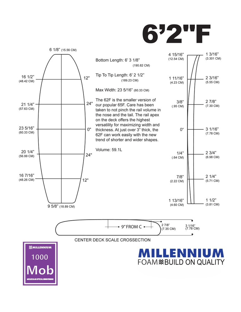 Un modelo bien equilibrado con una punta de base mediana. Ideal para cualquier tipo de tablas de surf en todas las condiciones de olas.